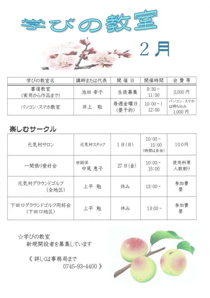 「学びの教室」2026年2月予定