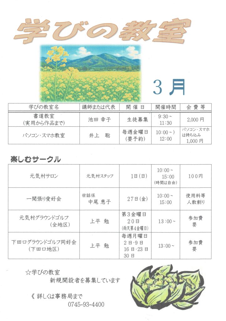 「学びの教室」2026年3月予定